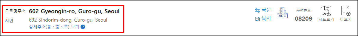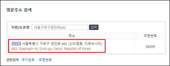 도로명 주소를 영문으로 변환하는 간편한 방법이 하나 더 있습니다.