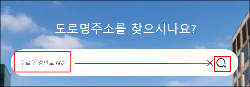 3. 도로명 주소를 입력한 후 검색을 하면 도로명 주소와 지번주소가 함께 보입니다.