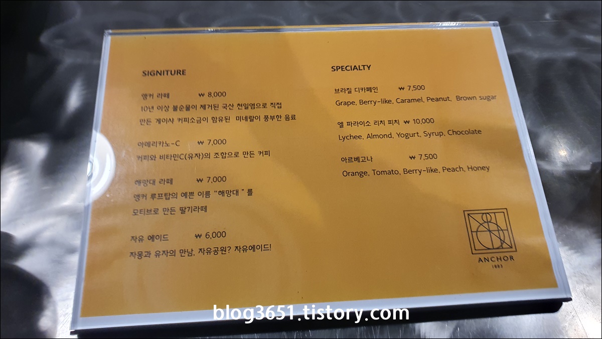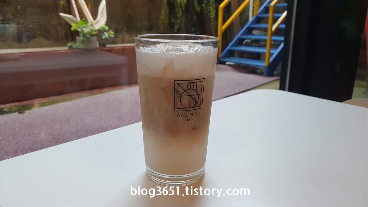 저는 시그니처 음료 중 하나인 앵커 라떼를 주문했습니다.