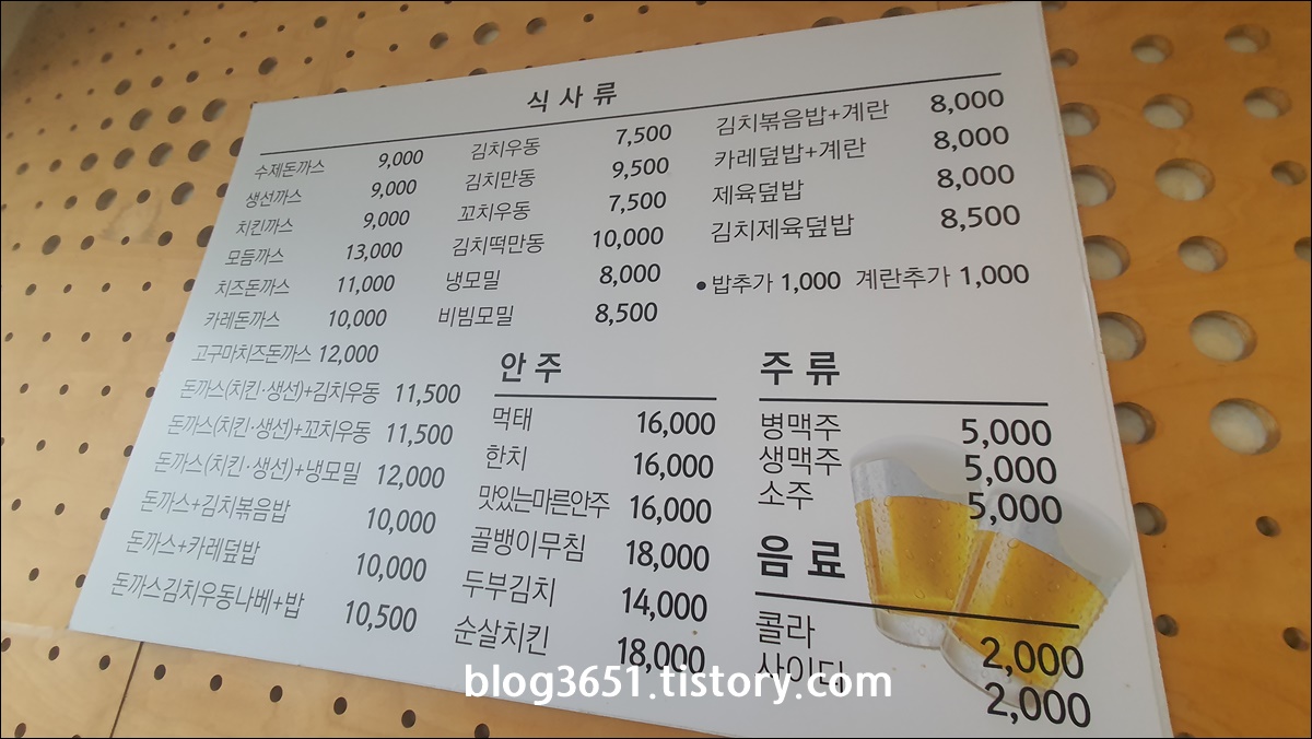 다미돈까스의 메뉴 가격은 나름 착했어요.