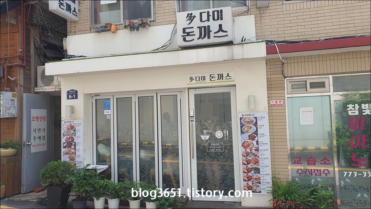 1번 출구 나온 후 바로 왼쪽에 있는 골목으로 들어오면 다미돈까스가 있어요.