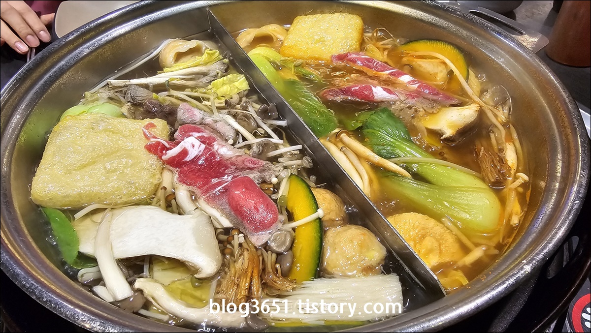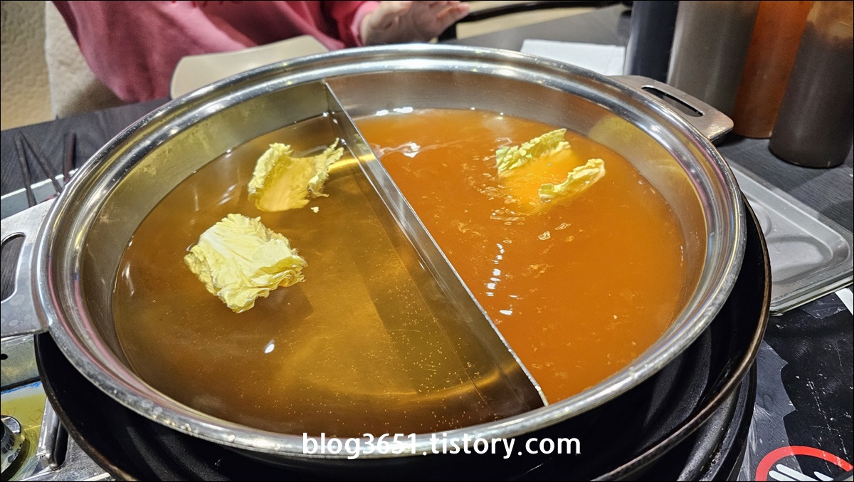 육수는 반반도 가능해서 저희는 반반으로 선택했어요.