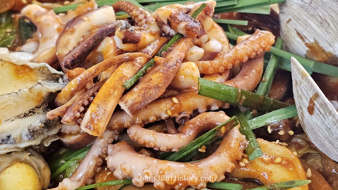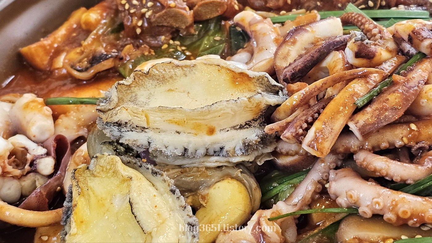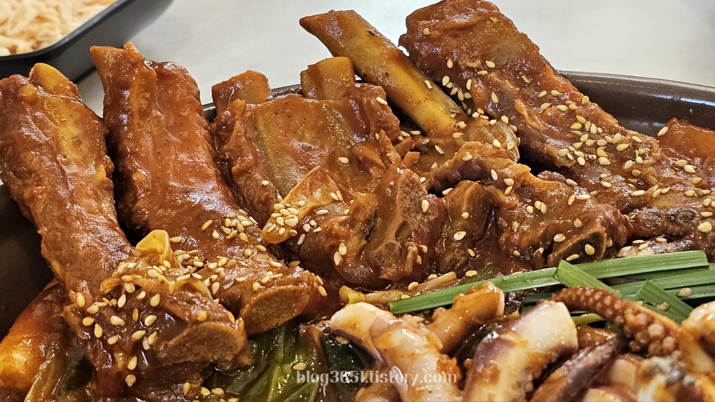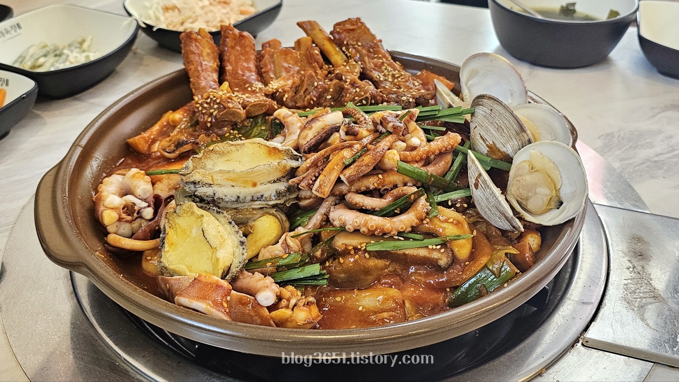 전복해물등갈비찜에는 등갈비, 오징어, 낙지, 전복 등 아주 다양한 식재료가 들어가 있어요.