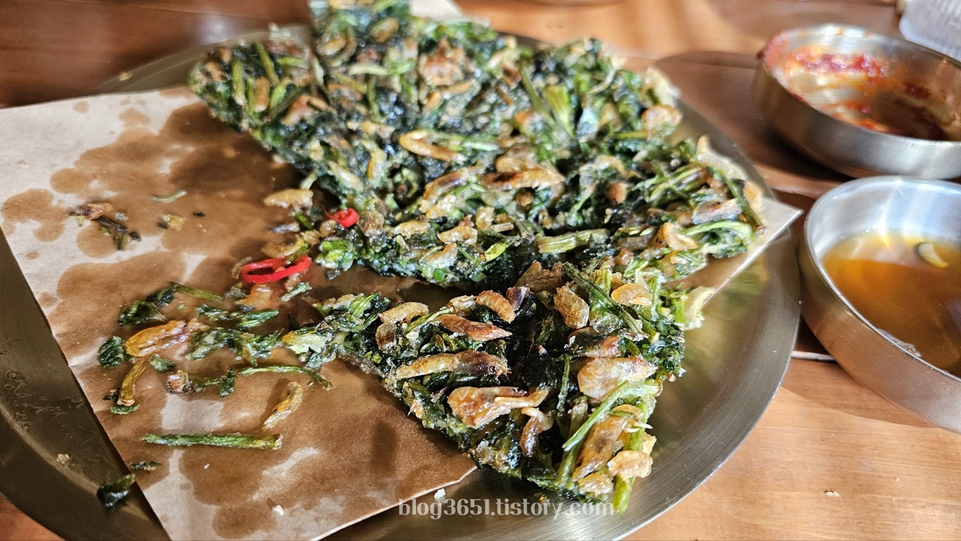 비빔밥만 먹기에는 심심할 것 같아 보리새우 미나리전도 하나 주문했습니다.