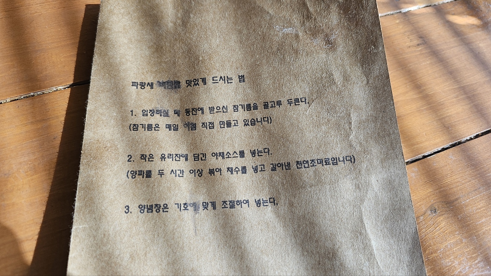 비빔밥은 매운 가리비 비빔밥과 파랑새 비빔밥을 주문했어요.