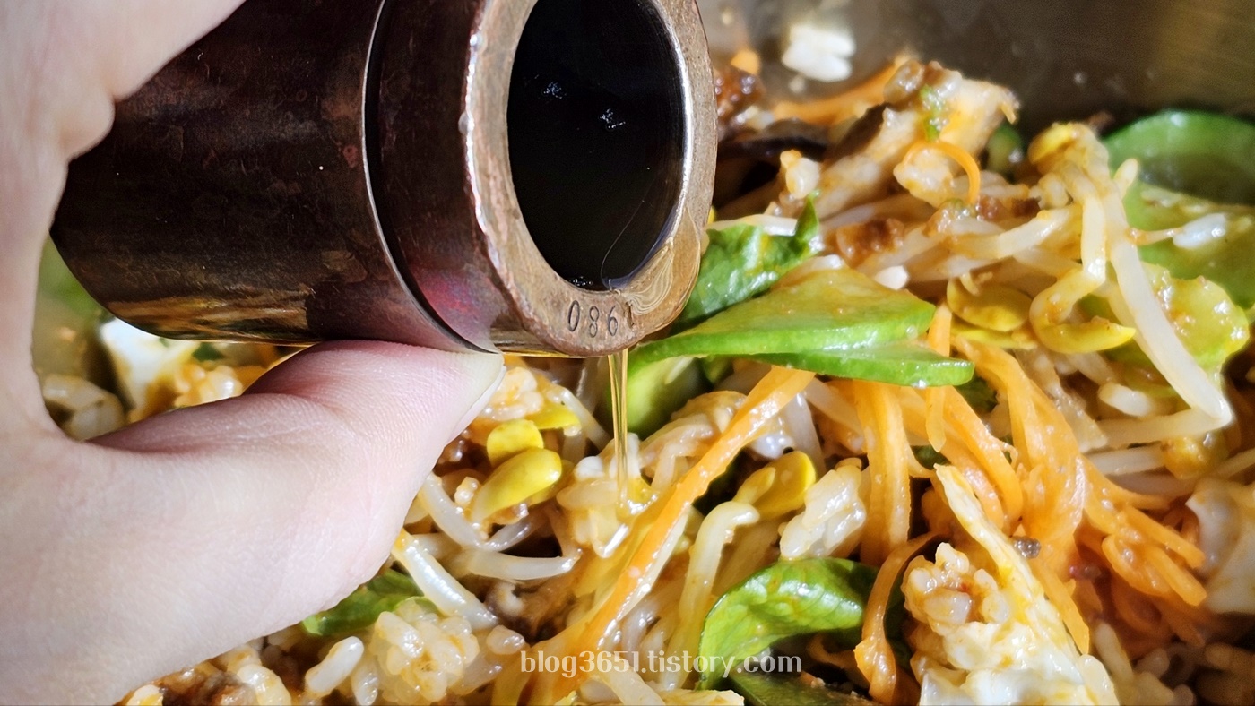 가게에서 직접 짠 참기름으로 비빔밥을 먹을 있는 경험이 흔치는 않은데, 이곳 파랑새방앗간에서는 그걸 해볼 수 있습니다.