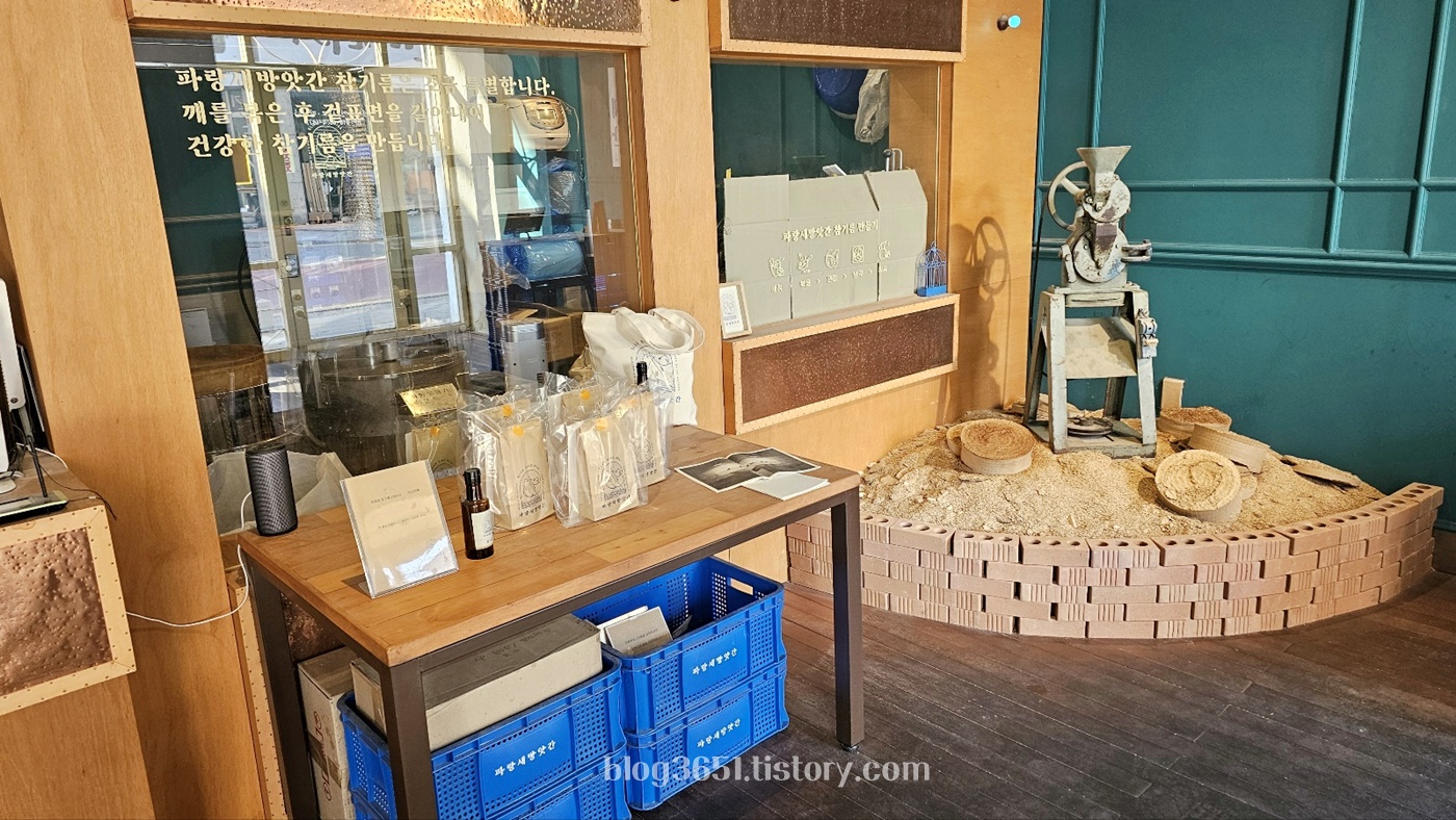 들어올때 2층 입구에서 인원수를 물어보고 참기름을 바로 짜서 줍니다.