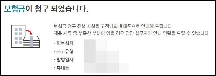 청구한 보험금에 대한 진행 사항은 휴대폰(카톡)으로 알림을 줍니다.