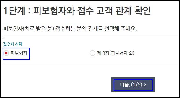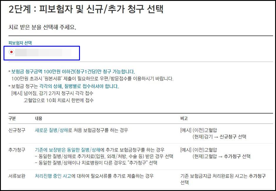 7. 2단계는 피보험자 및 신규/추가 청구 선택입니다.