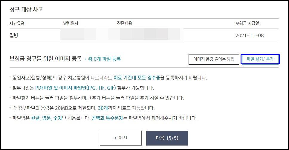 8. 신규 청구시에는 청구하는 질병에 대한 내용을 입력해야 하지만 추가 청구이기 때문에 그 과정은 생략됩니다.