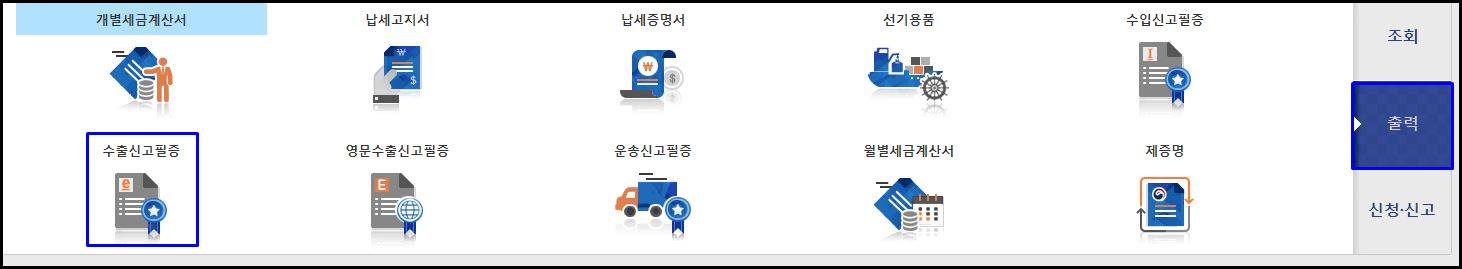관세청 전자통관시스템인 유니패스에 들어가 메인화면에 있는 출력 → 수출신고필증을 클릭해주세요.