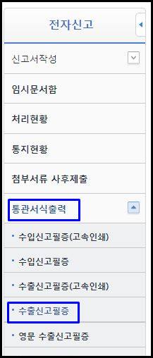 통관서식출력의 수출신고필증 화면으로 왔습니다.